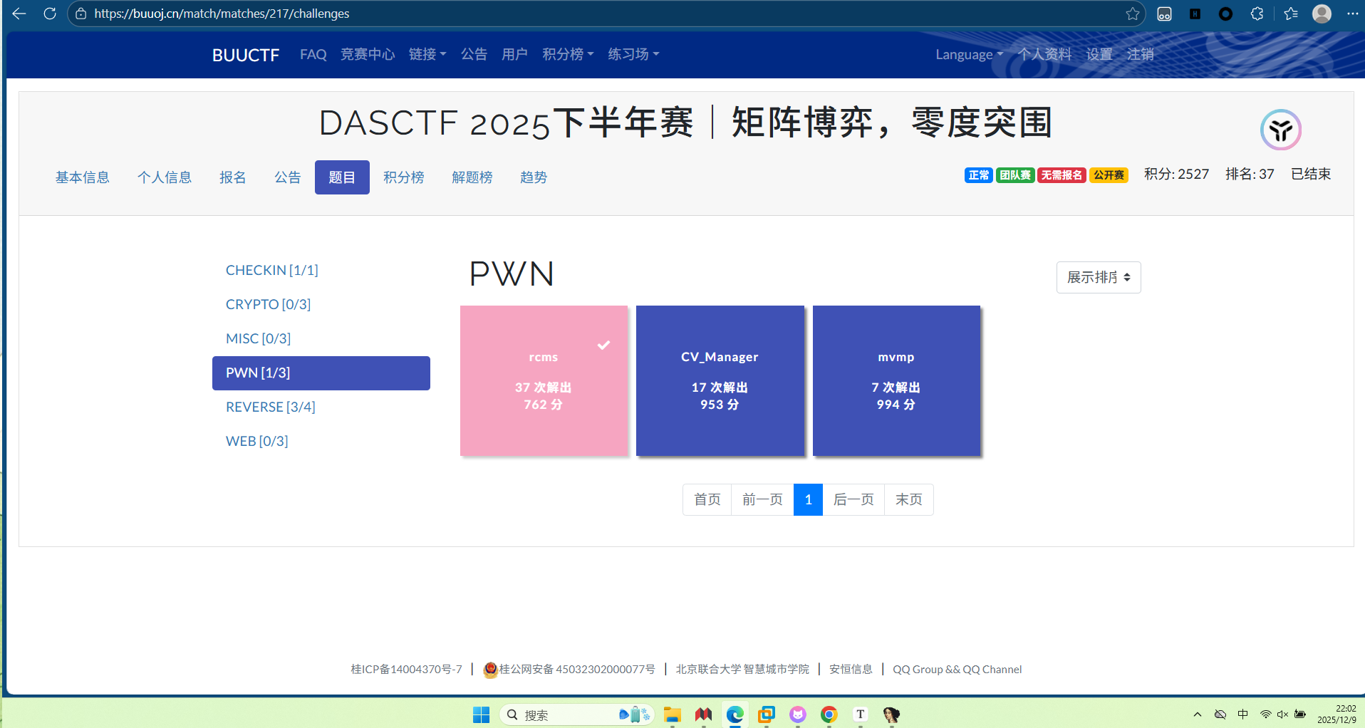 回顾比赛,一如既往的坐牢,比赛开始时,拿到rcms题的附件里没libc文件,以为是不需要libc文件也能做,结果搞几个小时都没办法;CV_Manager是glibc-2.34,想的打environ或IO,但是因为技术不行,打environ绕不过Canary,打IO卡住,做不出来;mvmp是没学过的vm_pwn,最后是没办法了才去试第一题的glibc,还是菜就多练啊。